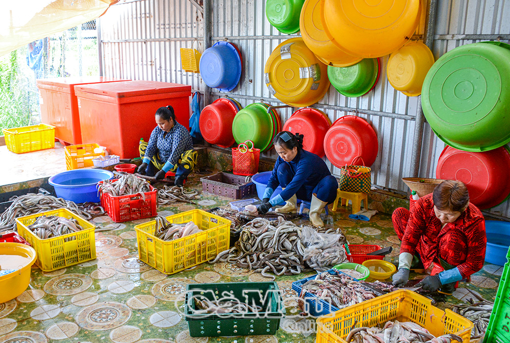 Hợp tác xã mực khô Kiều Nương 2 của chị Nguyễn Bích Tiền còn tạo việc làm cho hơn 20 lao động tại địa phương, đặc biệt là lao động nữ.