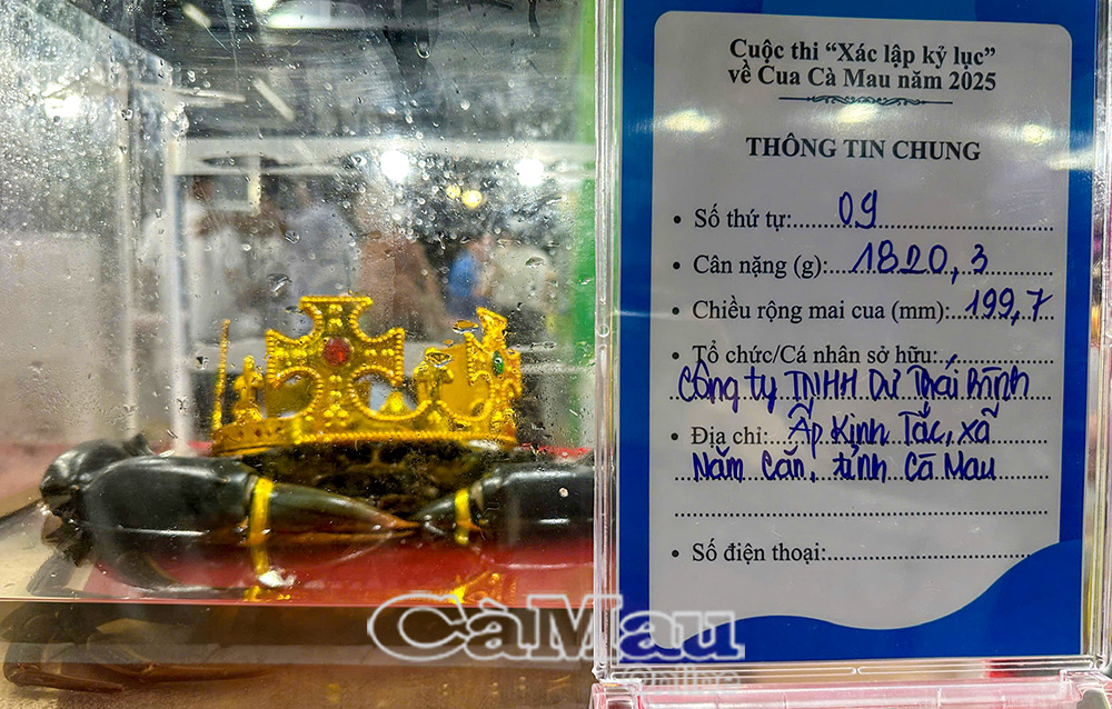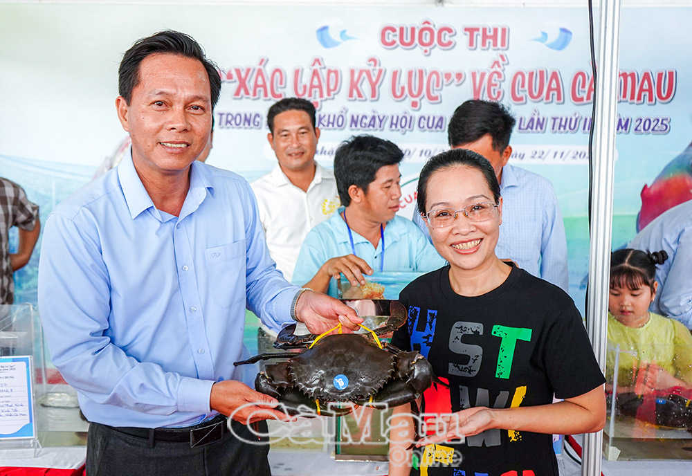 Báo Cà Mau Chiều 22/11, Ban Tổ chức cuộc thi “Xác lập kỷ lục” về cua Cà Mau đã trao giải nhất cho con cua nặng hơn 1,8 kg.