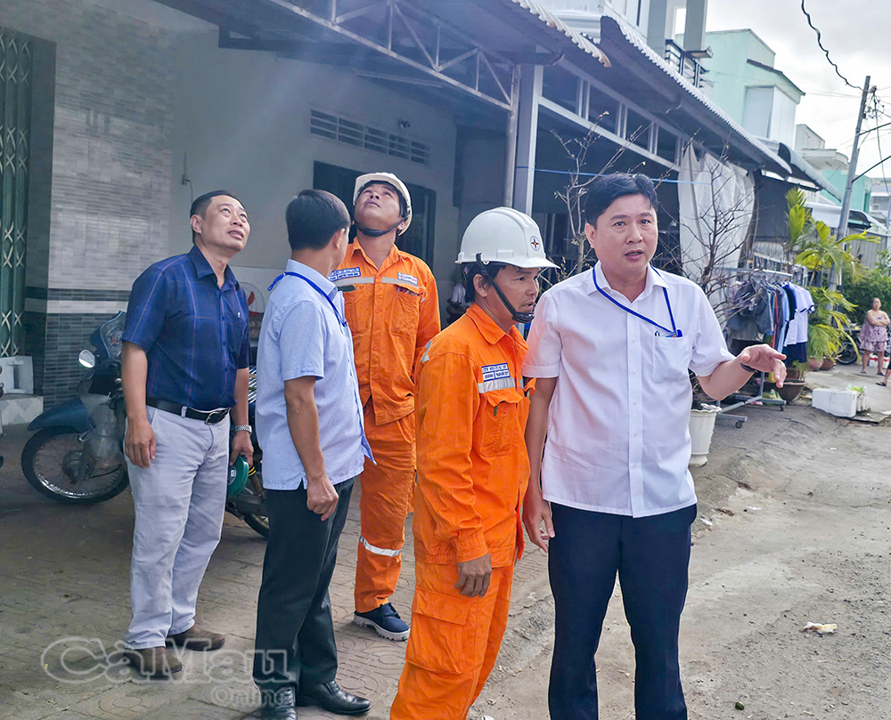 Ban cưỡng chế phường chỉ đạo lực lượng điện lực ngắt điện khu chợ đêm tạm.