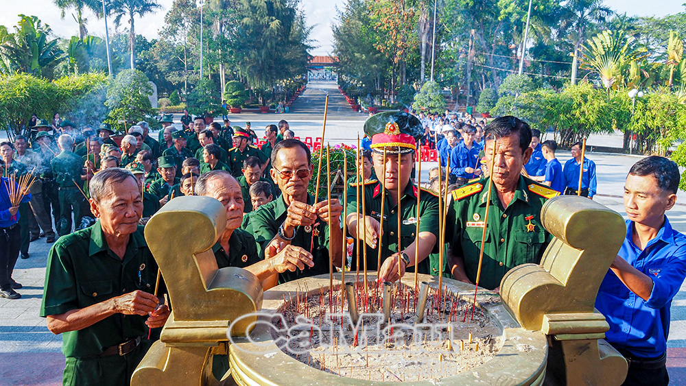 Sáng 18/4, Hội Cựu chiến binh (CCB) tỉnh Cà Mau phối hợp Hội CCB xã Hoà Bình và xã Vĩnh Mỹ tổ chức chương trình về nguồn tại Nghĩa trang Liệt sĩ tỉnh (xã Hoà Bình).