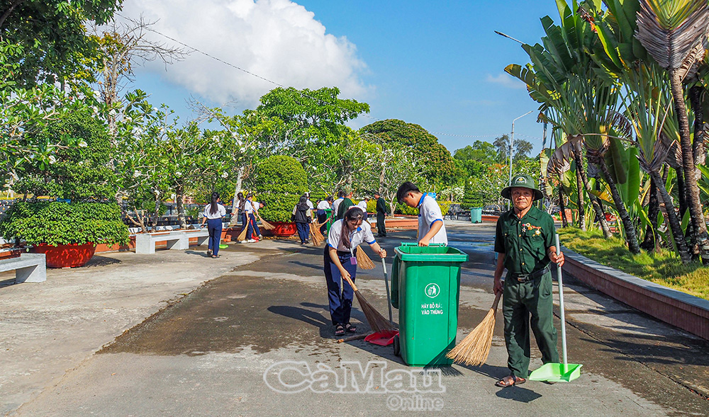 Cũng trong chuyến về nguồn, các CCB, đoàn viên thanh niên và học sinh đã cùng nhau tổng vệ sinh khuôn viên nghĩa trang, chăm sóc phần mộ liệt sĩ và dâng hoa, dâng hương, thành kính tri ân sâu sắc sự hy sinh to lớn của các anh hùng liệt sĩ cho nền độc lập, tự do của Tổ quốc.