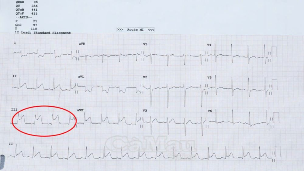 Tại bệnh viện, qua thăm khám và thực hiện điện tâm đồ (ECG), các bác sĩ phát hiện đoạn ST chênh lên rõ rệt, dấu hiệu điển hình của nhồi máu cơ tim cấp cần can thiệp khẩn cấp. Lúc này, động mạch vành của bệnh nhân đã bị tắc hoàn toàn, khiến máu không thể lưu thông để nuôi tim và cơ thể.