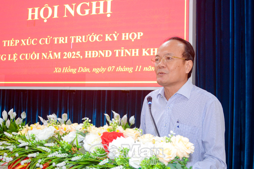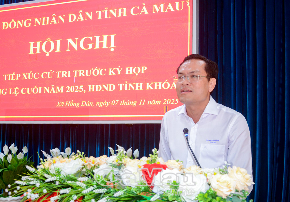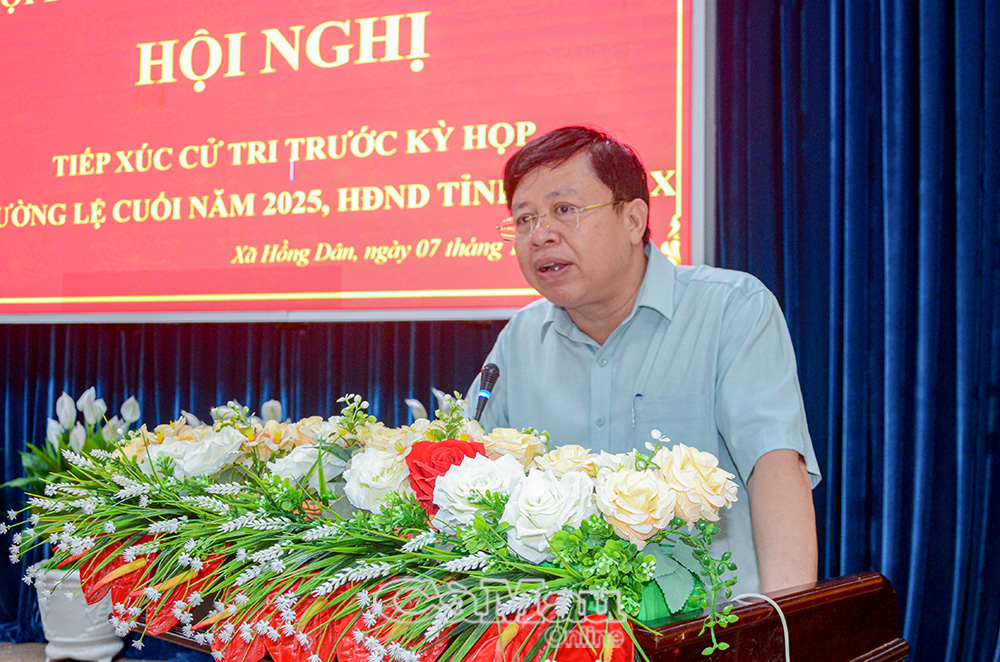 Sáng 7/11, Phó Chủ tịch UBND tỉnh Ngô Vũ Thăng cùng Tổ đại biểu HĐND tỉnh có buổi tiếp xúc cử tri tại xã Hồng Dân trước Kỳ họp thường lệ cuối năm 2025 của HĐND tỉnh khoá X. Buổi tiếp xúc thu hút gần 100 cử tri địa phương tham dự.