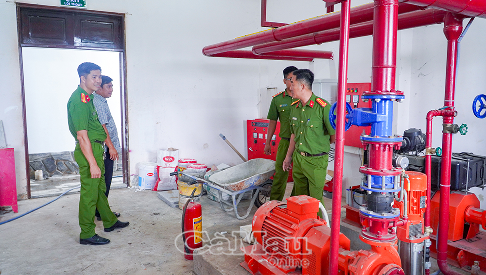 Lực lượng PCCC & CNCH Công an tỉnh kiểm tra, bảo đảm an toàn PCCC và trang thiết bị tại Trung tâm Hội nghị tỉnh Cà Mau.