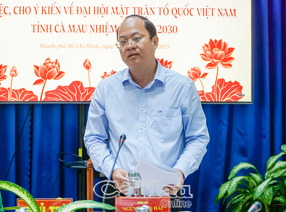 Bí thư Tỉnh uỷ Cà Mau Nguyễn Hồ Hải khẳng định Ban Thường vụ Tỉnh uỷ đặc biệt quan tâm công tác chuẩn bị Đại hội MTTQ Việt Nam tỉnh đầu tiên sau hợp nhất và thực hiện mô hình chính quyền địa phương 2 cấp.
