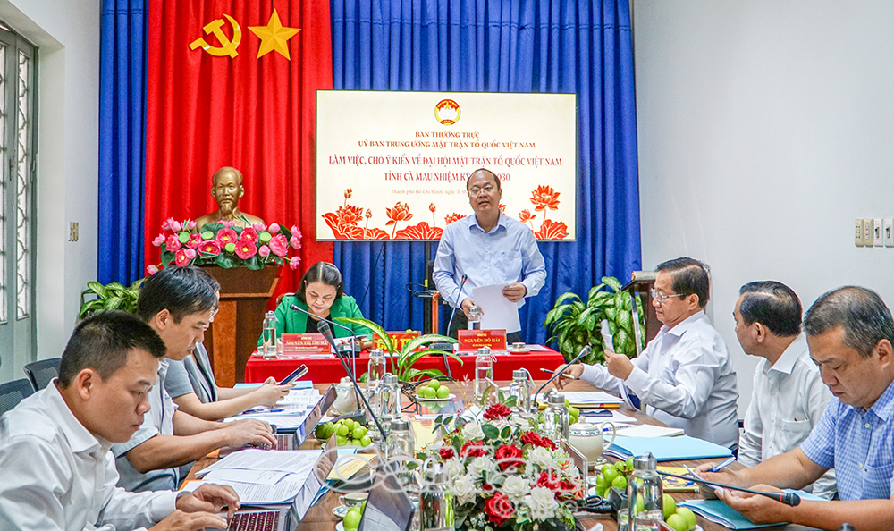 Phát biểu tại buổi làm việc, đồng chí Nguyễn Hồ Hải, Bí thư Tỉnh uỷ Cà Mau, nhấn mạnh: Ban Thường vụ Tỉnh uỷ đặc biệt quan tâm công tác chuẩn bị đại hội, đây là đại hội đầu tiên của MTTQ Việt Nam tỉnh Cà Mau sau hợp nhất và triển khai mô hình chính quyền địa phương 2 cấp. Vì vậy, công tác xây dựng văn kiện, đề án nhân sự và các nội dung liên quan phải được thực hiện đúng quy định, chu đáo, thể hiện rõ tinh thần đổi mới, đoàn kết, thống nhất; đồng thời, sau đại hội, cần nhanh chóng triển khai các phong trào hành động cách mạng thiết thực, hướng về cơ sở.