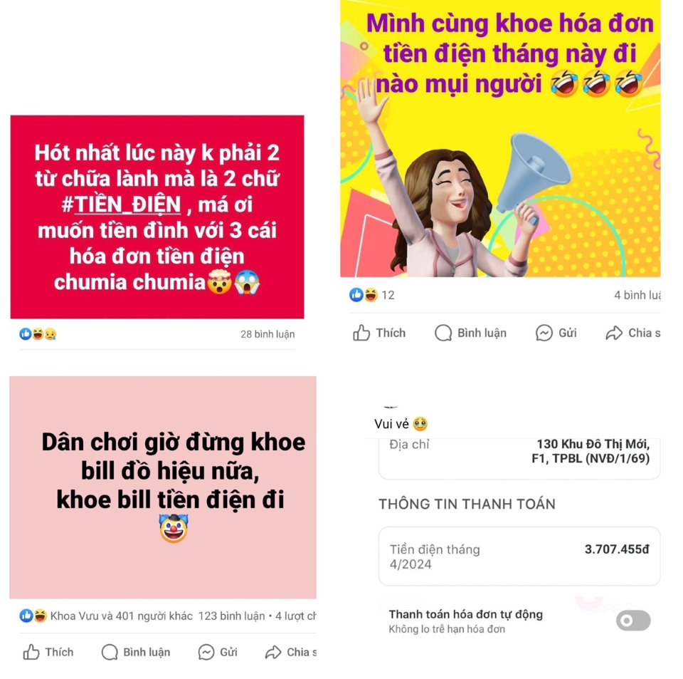 Nhiều người đùa vui rằng “khoe” hóa đơn tiền điện đang là trend hot nhất thời điểm này. Ảnh: Nguồn Facebook