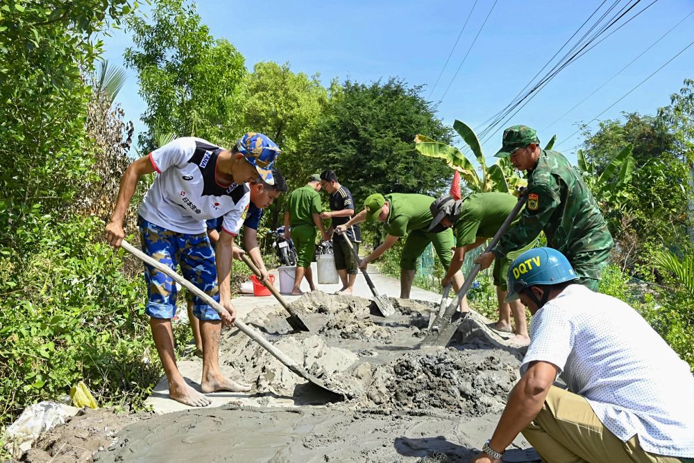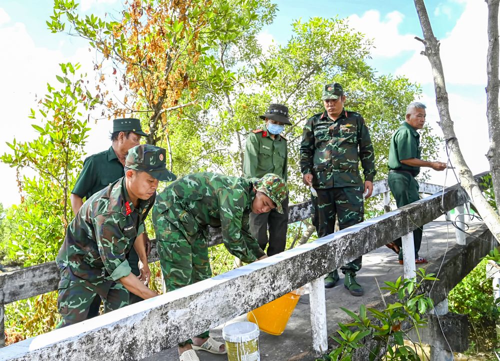 LLVT sửa chữa cầu, nối nhịp quê hương. Ảnh: VĂN ĐÔNG