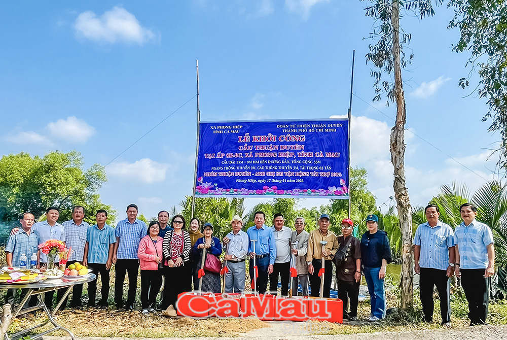 Thiết thực lập thành tích dâng quà chào mừng Đại hội đại biểu toàn quốc lần thứ XIV của Đảng, gắn với các hoạt động mừng Đảng - mừng Xuân Bính Ngọ 2026, ngày 17/1, xã Phong Hiệp phối hợp cùng Đoàn từ thiện Thuận Duyên (TP. HCM) tổ chức Lễ khởi công 2 cầu giao thông nông thôn tại Ấp 8B và Ấp 9C.