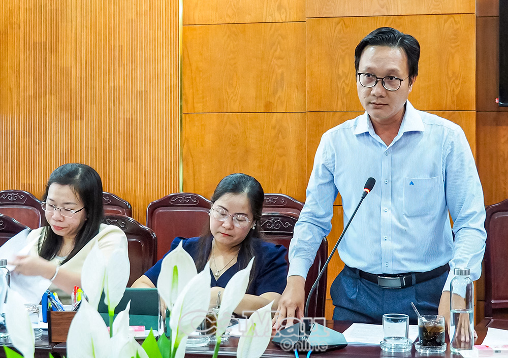 Đồng chí Ngô Minh Toàn, Phó Bí thư Đảng uỷ, Phó Giám đốc Thường trực Báo và phát thanh, truyền hình Cà Mau, trình bày tham luận chủ đề “Công tác lãnh đạo, định hướng tư tưởng cho đội ngũ cán bộ, phóng viên, biên tập viên trước những vấn đề phức tạp, nhạy cảm trên không gian mạng”.