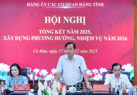 Báo Cà Mau Chiều 17/12, Đảng uỷ Các cơ quan Đảng tỉnh Cà Mau tổ chức Hội nghị tổng kết công tác năm 2025 và triển khai phương hướng, nhiệm vụ năm 2026.
