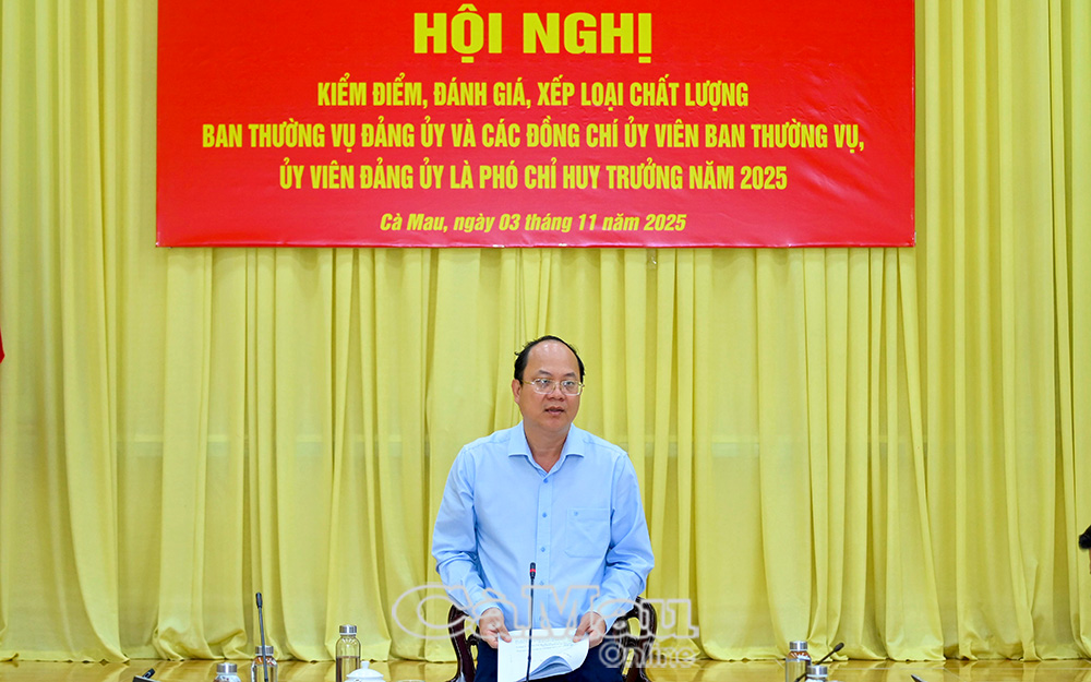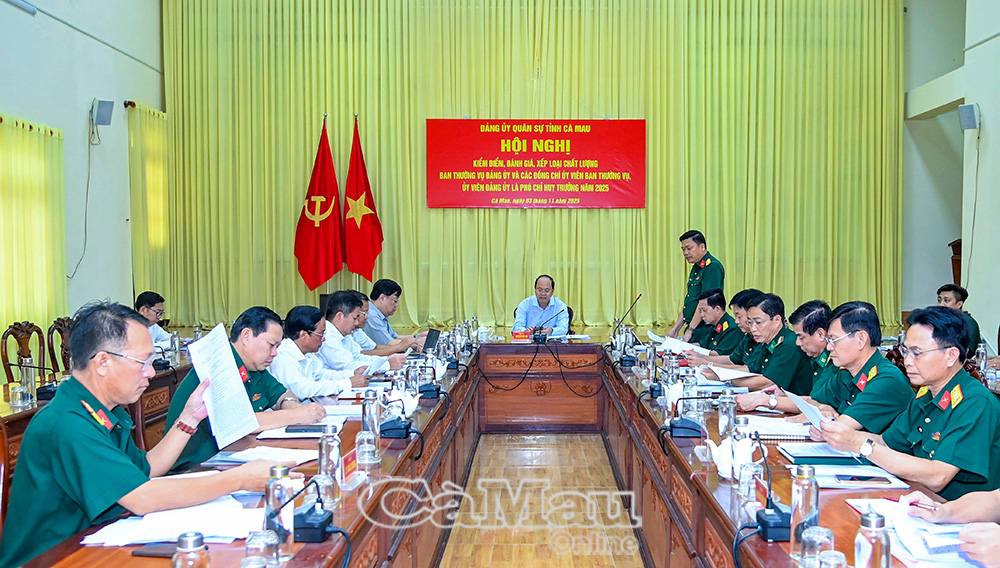 Báo Cà Mau Chiều 3/11, Đảng uỷ Quân sự tỉnh Cà Mau tổ chức Hội nghị kiểm điểm, đánh giá, xếp loại chất lượng Ban Thường vụ Đảng uỷ và các đồng chí Uỷ viên Ban Thường vụ, Uỷ viên Đảng uỷ là Phó Chỉ huy trưởng Bộ Chỉ huy Quân sự (CHQS) tỉnh năm 2025.