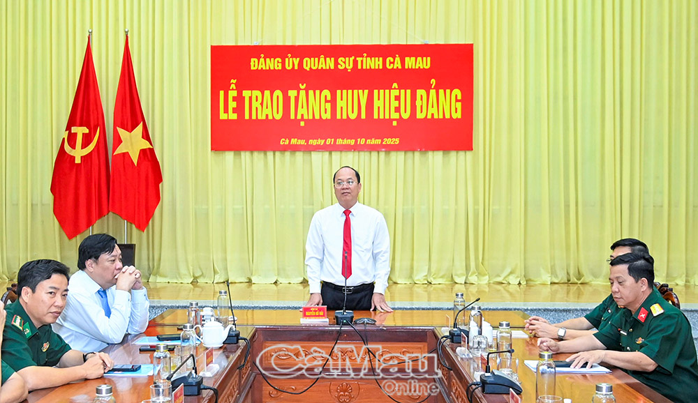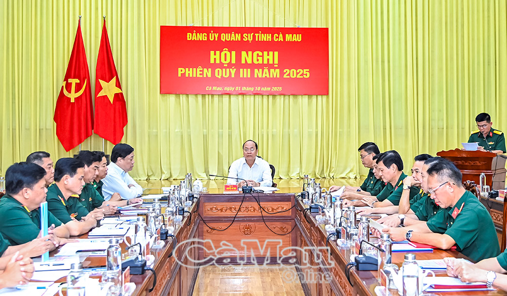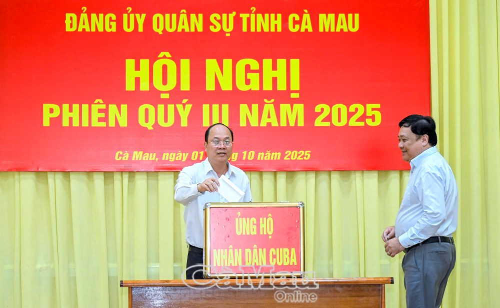 Báo Cà Mau Chiều 1/10, Đảng uỷ Quân sự (ĐUQS) tỉnh Cà Mau tổ chức Hội nghị Đảng uỷ ra Nghị quyết lãnh đạo thực hiện nhiệm vụ quý IV/2025; ủng hộ Nhân dân Cuba và trao huy hiệu 30 năm tuổi Đảng. Đồng chí Nguyễn Hồ Hải, Bí thư Tỉnh uỷ, Bí thư Đảng uỷ Quân sự tỉnh, chủ trì hội nghị.