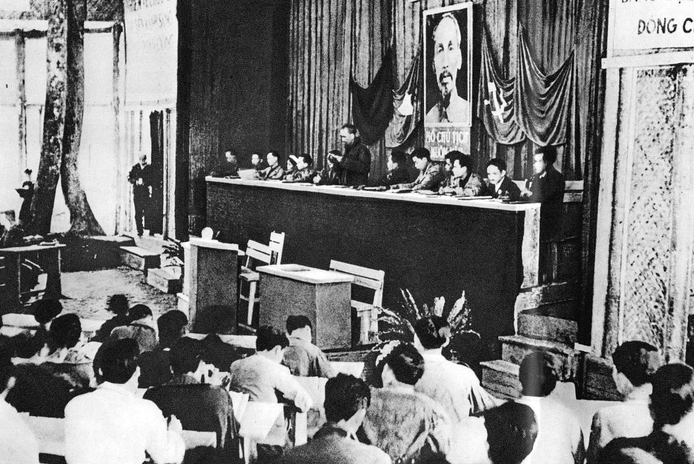Chủ tịch Hồ Chí Minh đọc Báo cáo chính trị tại Đại hội Đại biểu toàn quốc lần thứ II của Đảng tổ chức tại xã Vinh Quang, huyện Chiêm Hoá, tỉnh Tuyên Quang, tháng 2/1951. Ảnh: Tư liệu TTXVN