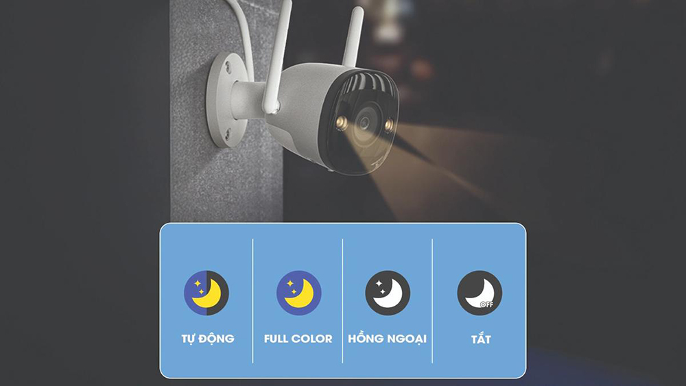 Chế độ Full Color giúp ghi hình ban đêm có màu sắc rõ ràng khi phát hiện chuyển động, trong khi hồng ngoại phù hợp cho việc giám sát kín đáo. Sự linh hoạt này giúp camera không chỉ ghi hình tốt trong bóng tối mà còn nâng cao hiệu quả an ninh.