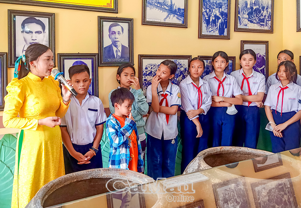 Hoạt động tham quan, học tập tại Khu Căn cứ Tỉnh uỷ Xẻo Ðước (xã Phú Mỹ) góp phần giáo dục truyền thống cho thế hệ trẻ, thông qua hướng dẫn của Bảo tàng tỉnh Cà Mau.