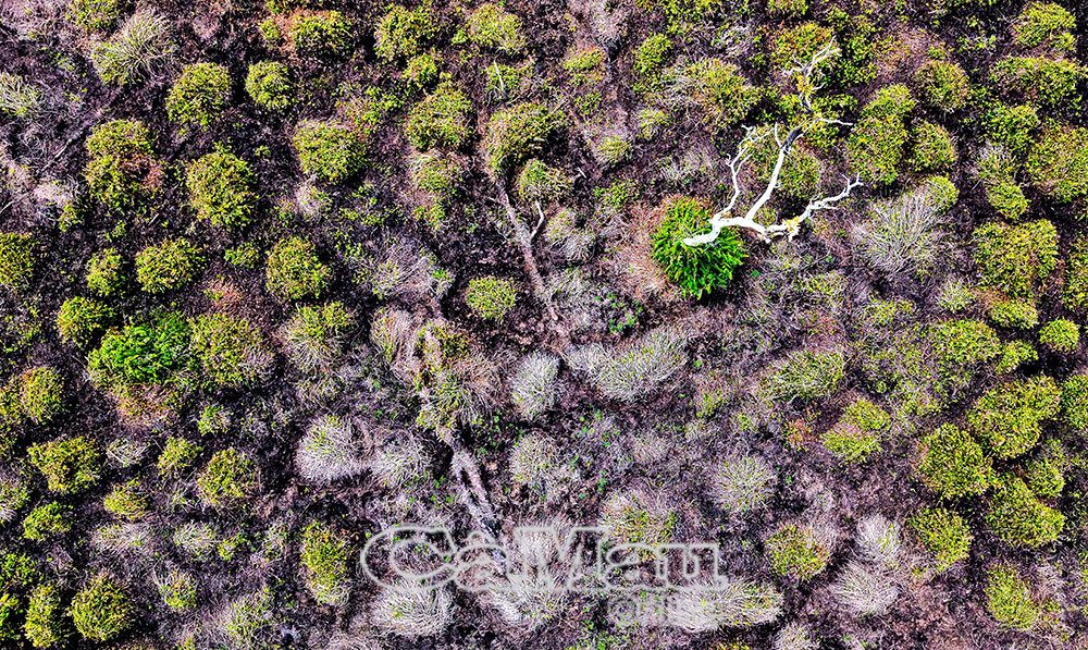 Tuy là khu vực rừng trồng khôi phục thuộc Phân khu Dịch vụ - Hành chính, tuy nhiên cũng xuất nhiều nhiều khu vực cây rừng (tràm) bị chết, hình thành những “trảng” lớn giữa vùng rừng. Ảnh chụp tại Khoảnh 36, Tiểu khu 6.