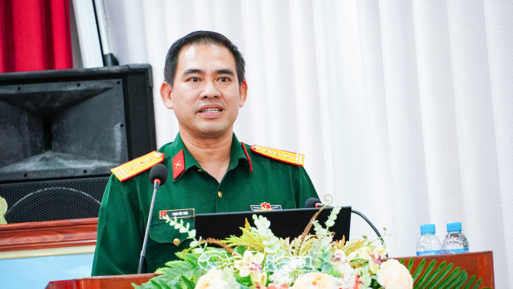 Thượng tá Phạm Văn Phúc, Phó Giám đốc khách hàng doanh nghiệp Viettel Cà Mau, giới thiệu giải pháp chuyển đổi số và logistics dành cho HTX.