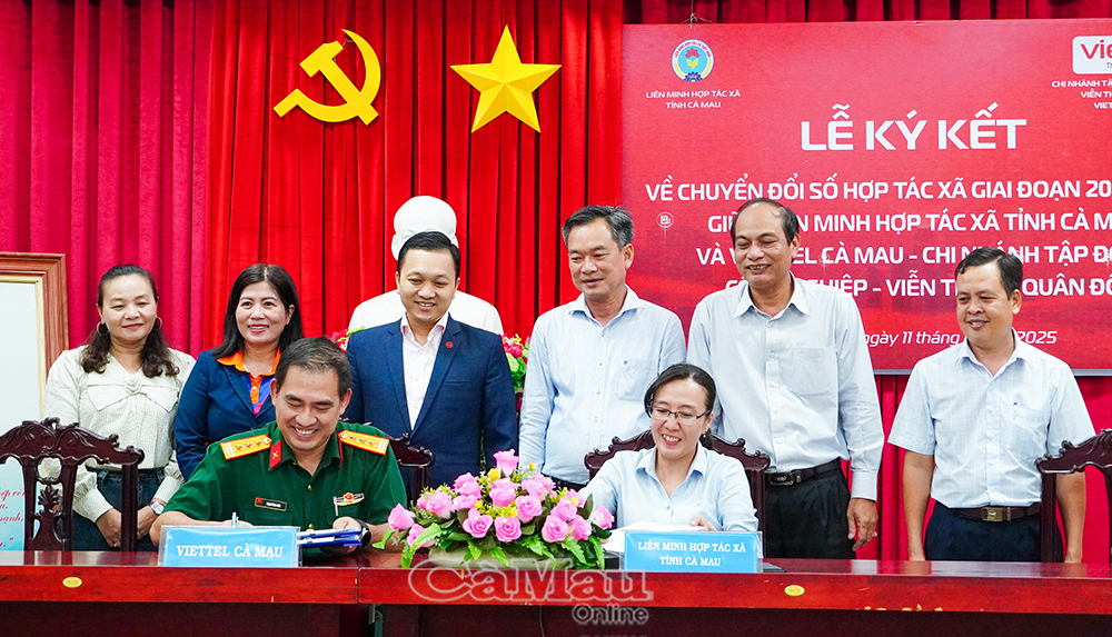 Dịp này, Liên minh HTX tỉnh Cà Mau và Viettel Cà Mau, chi nhánh Tập đoàn Công nghiệp Viễn thông Quân đội đã ký kết thỏa thuận hợp tác về chuyển đổi số trong kinh tế tập thể giai đoạn 2025 - 2030, đồng thời ký hợp đồng hỗ trợ các HTX sử dụng phần mềm quản lý bán hàng, góp phần nâng cao hiệu quả điều hành, quản lý và xúc tiến thương mại trong hoạt động kinh tế tập thể.