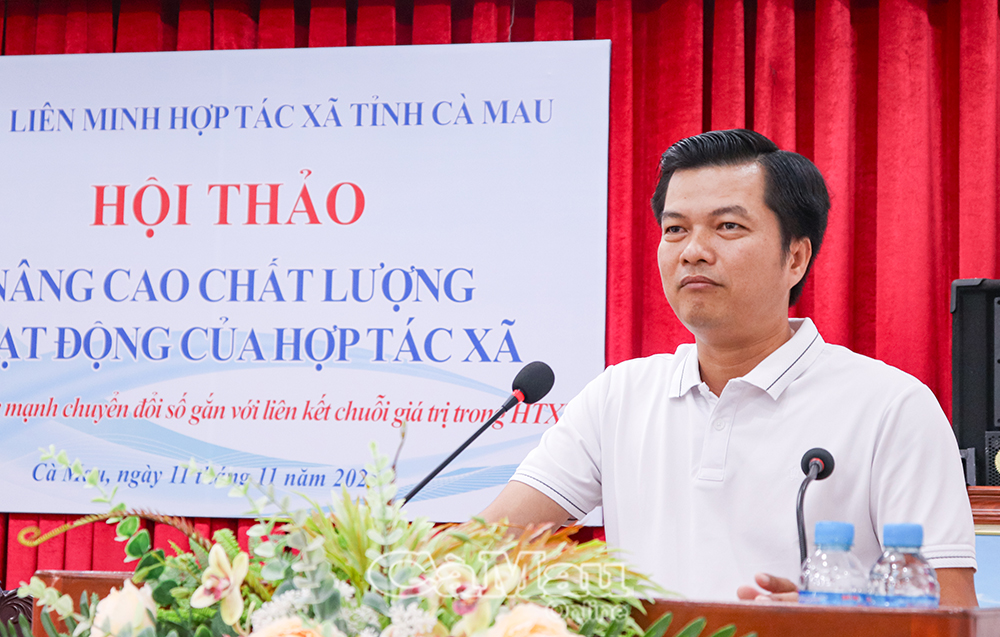 Phát biểu tại hội thảo, ông Nguyễn Văn Vũ, Chủ tịch Liên minh HTX tỉnh Cà Mau khẳng định: “Đẩy mạnh chuyển đổi số trong HTX là xu thế tất yếu, giúp nâng cao năng lực quản trị, mở rộng thị trường, gia tăng sức cạnh tranh và hướng tới phát triển bền vững cho HTX”.