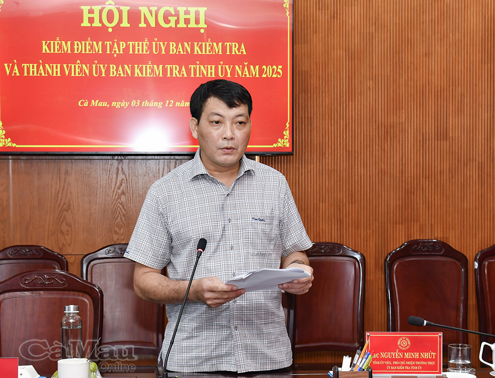 Đồng chí Nguyễn Minh Nhứt, Phó Chủ nhiệm Thường trực UBKT Tỉnh uỷ, trình bày Báo cáo kiểm điểm của tập thể UBKT Tỉnh uỷ.