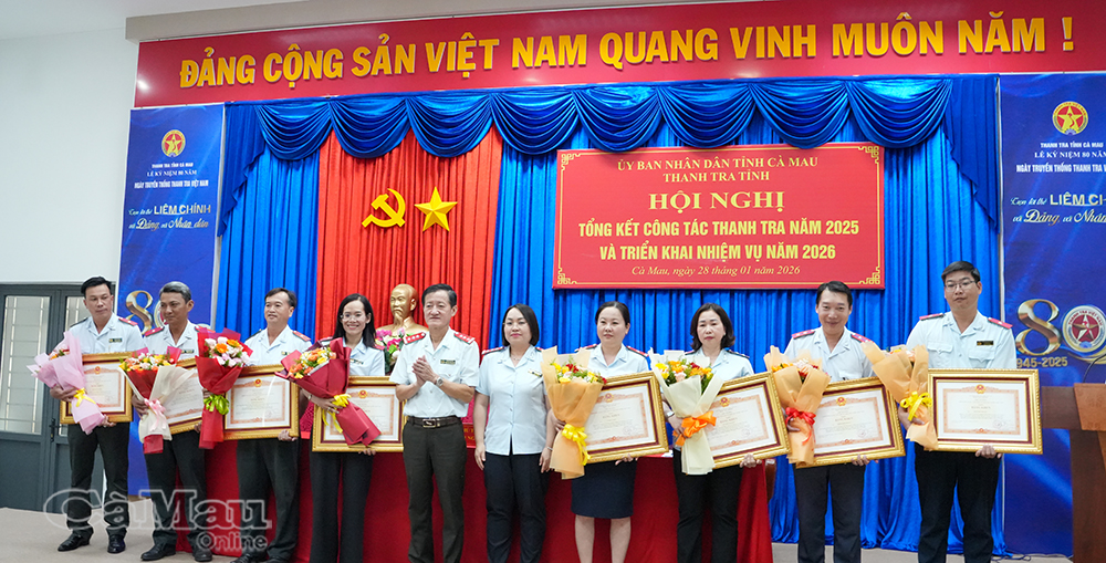 Thông tin tại Hội nghị tổng kết công tác thanh tra năm 2025 và triển khai nhiệm vụ năm 2026 vào chiều 28/1, trong năm 2025, Thanh tra tỉnh Cà Mau triển khai 67 cuộc thanh tra (đã ban hành kết luận 56 cuộc tại 94 đơn vị), qua đó kiến nghị xử lý nhiều tổ chức, cá nhân.