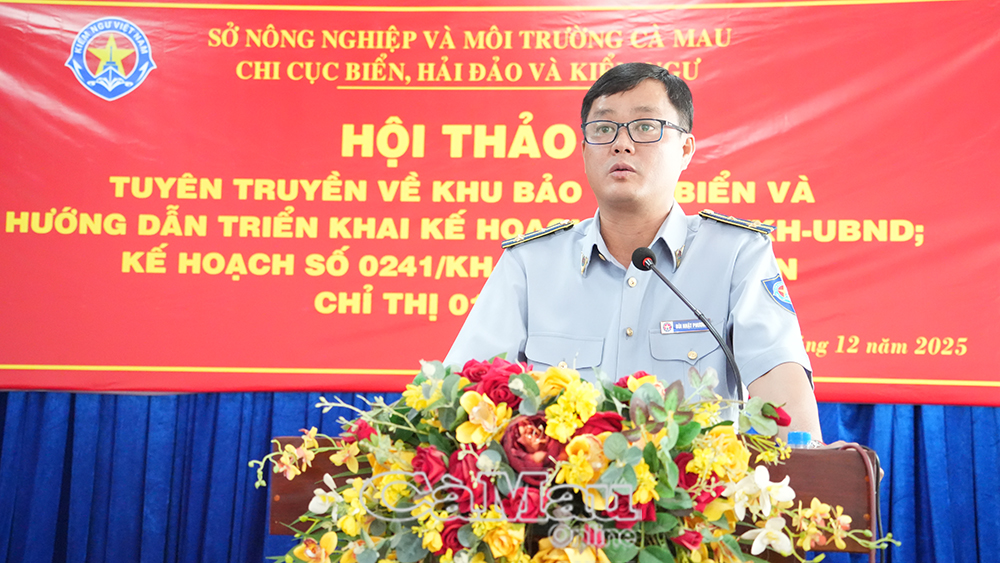 Ông Bùi Nhật Phương, Phó Chi cục trưởng Chi cục Biển, Hải đảo và Kiểm ngư Cà Mau, nhấn mạnh vai trò của công tác tuyên truyền, nâng cao nhận thức cộng đồng trong bảo vệ và phát triển bền vững Khu bảo tồn biển tỉnh Cà Mau.