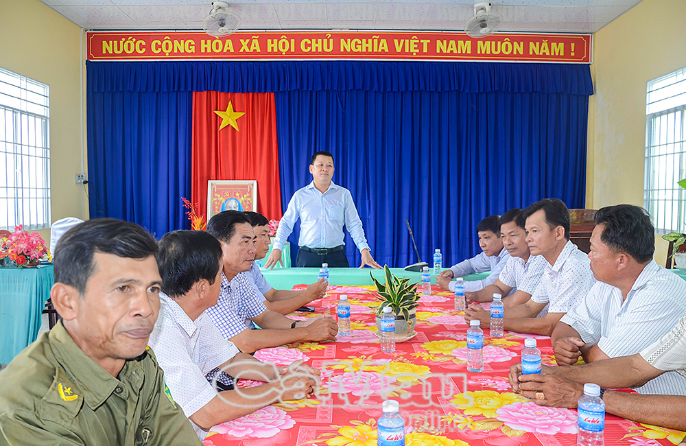 Ông Cao Văn Lợi, Trưởng Phòng Bảo trợ xã hội, tuyên truyền và phổ biến các chính sách trợ giúp xã hội cho Ban Dân chánh ấp Phước Thọ (xã Phước Long) nhằm áp dụng hiệu quả vào công tác tại cơ sở.