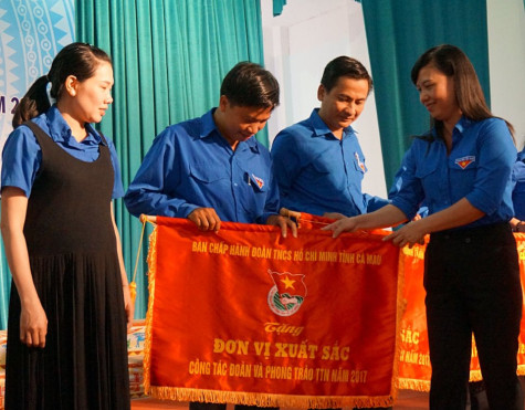 | Bí thư Tỉnh đoàn Cà Mau Huỳnh Út Mười trao cờ thi đua cho các đơn vị xuất sắc trong công tác Đoàn và phong trào TTN năm 2017. |