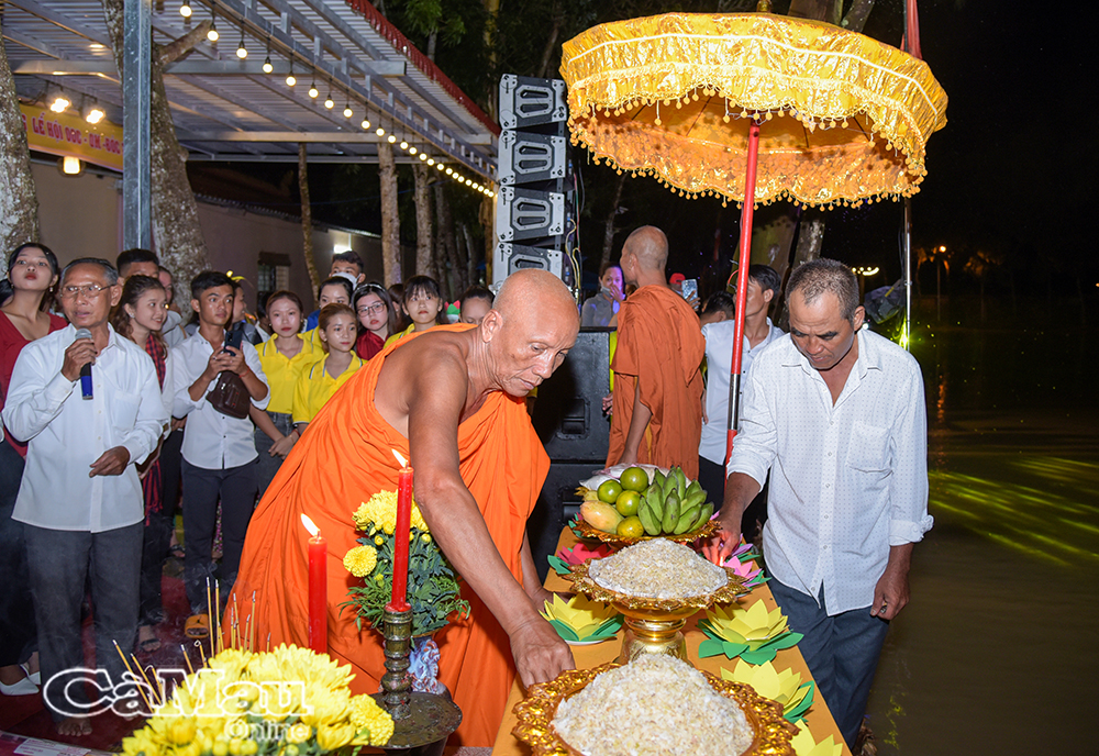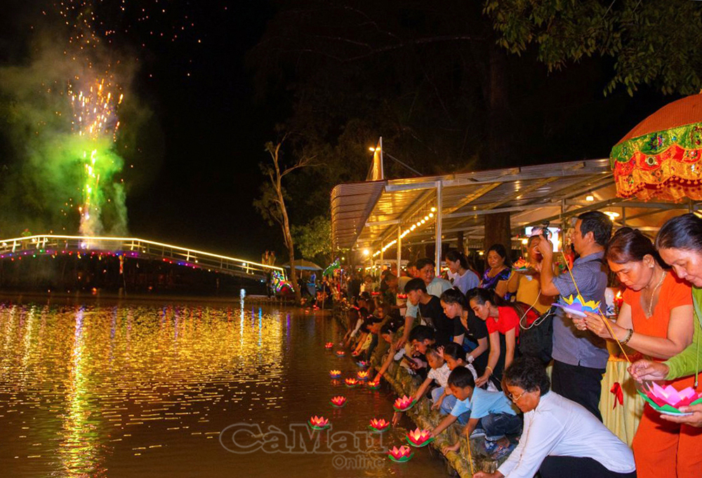Đồng bào Khmer tham gia nghi thức thả hoa đăng trong lễ hội để nguyện cầu những điều tốt đẹp cho gia đình, phum sóc.