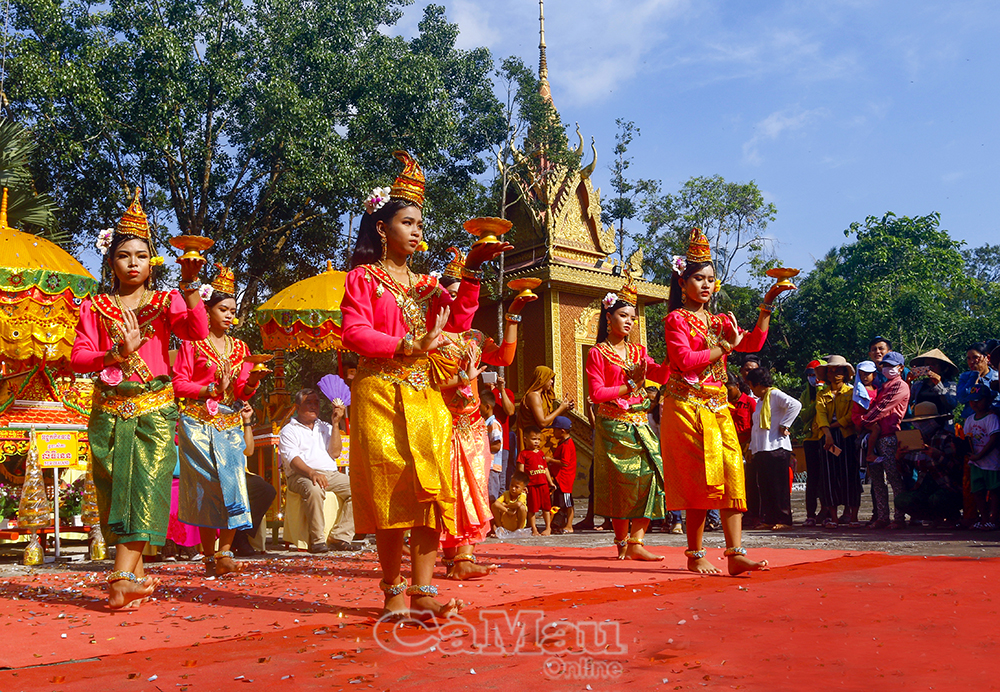 Những điệu múa, trang phục truyền thống của đồng bào Khmer được chùa ra sức giữ gìn, phát huy giá trị.