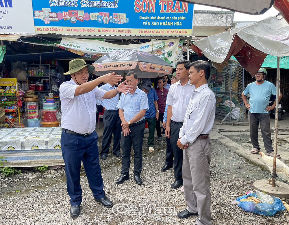 Phó Bí thư Thường trực Tỉnh uỷ Huỳnh Quốc Việt khảo sát tại điểm chợ Cống Xìa, ấp Bửu II, xã Đông Hải.