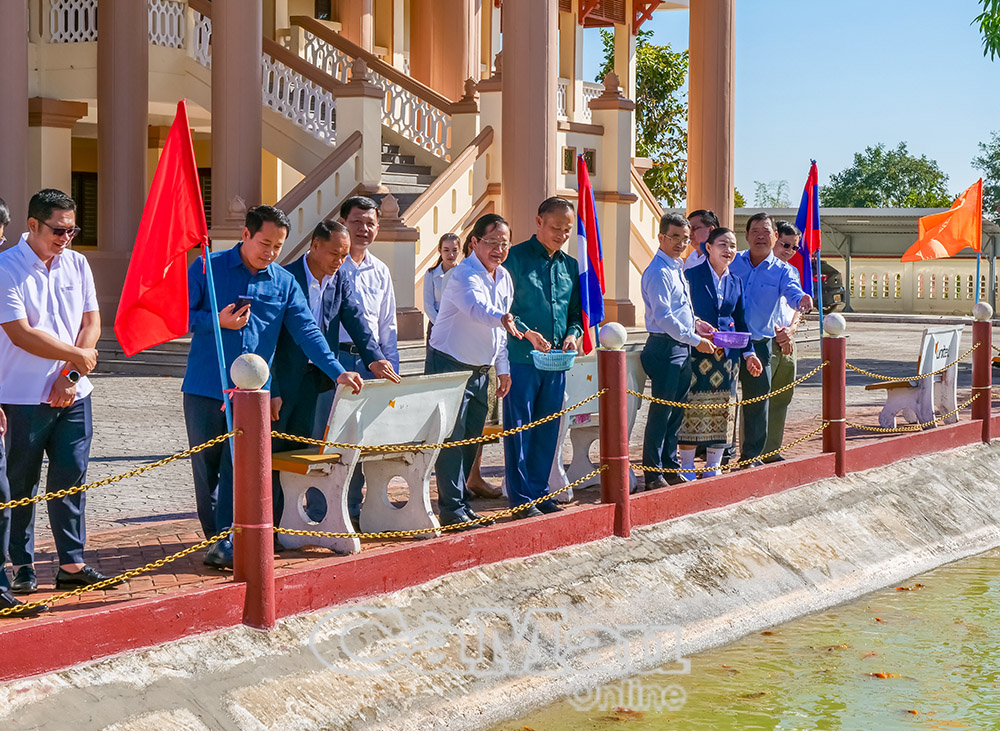 Tháp tùng cùng đoàn có ông Kẻo U Đon Bút Sỉ Nhuc Khỏn, Uỷ viên Ban Thường vụ Tỉnh uỷ, Phó Tỉnh trưởng tỉnh Khăm Muồn; ông Phị Sả May Kong Sa Đệt, Uỷ viên Ban Thường vụ Tỉnh uỷ, Chủ tịch Uỷ ban Mặt trận Lào xây dựng đất nước tỉnh Khăm Muồn.