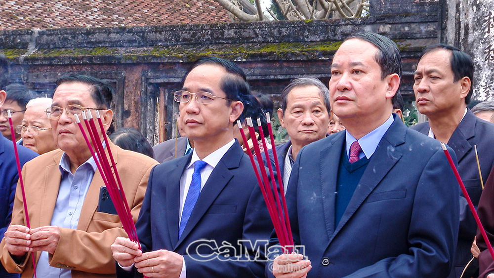 Đoàn cán bộ tỉnh Cà Mau có Uỷ viên Ban Thường vụ Tỉnh uỷ, Trưởng ban Tuyên giáo và Dân vận Tỉnh uỷ Hồ Trung Việt, Phó Chủ tịch HĐND tỉnh Phan Hoàng Vũ và các đồng chí nguyên lãnh đạo tỉnh qua các thời kỳ.