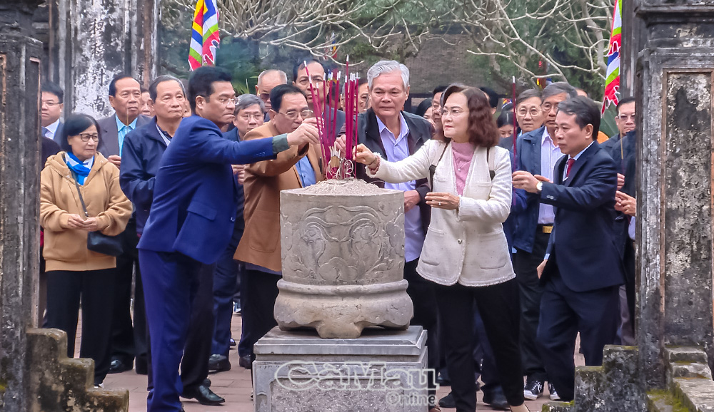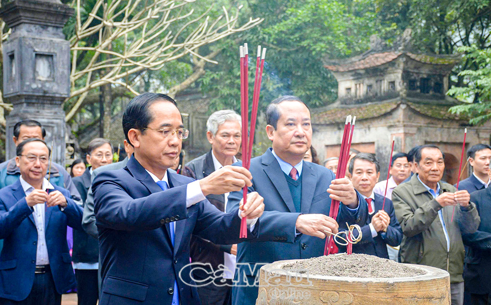 Đồng chí Hồ Thanh Thuỷ, Phó Bí thư Tỉnh uỷ, Chủ tịch Uỷ ban MTTQ Việt Nam tỉnh Cà Mau và đồng chí Mai Văn Tuất, Phó Bí thư Tỉnh uỷ, Chủ tịch Uỷ ban MTTQ Việt Nam tỉnh Ninh Bình, dâng hương Vua Lê Đại Hành.