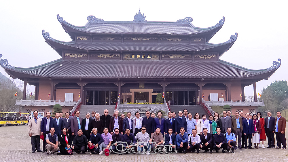 Đoàn đại biểu tỉnh Cà Mau chụp ảnh lưu niệm tại chùa Bái Đính (tỉnh Ninh Bình).