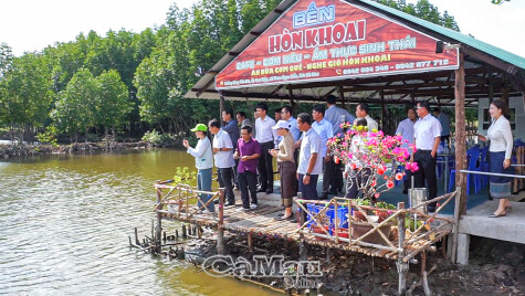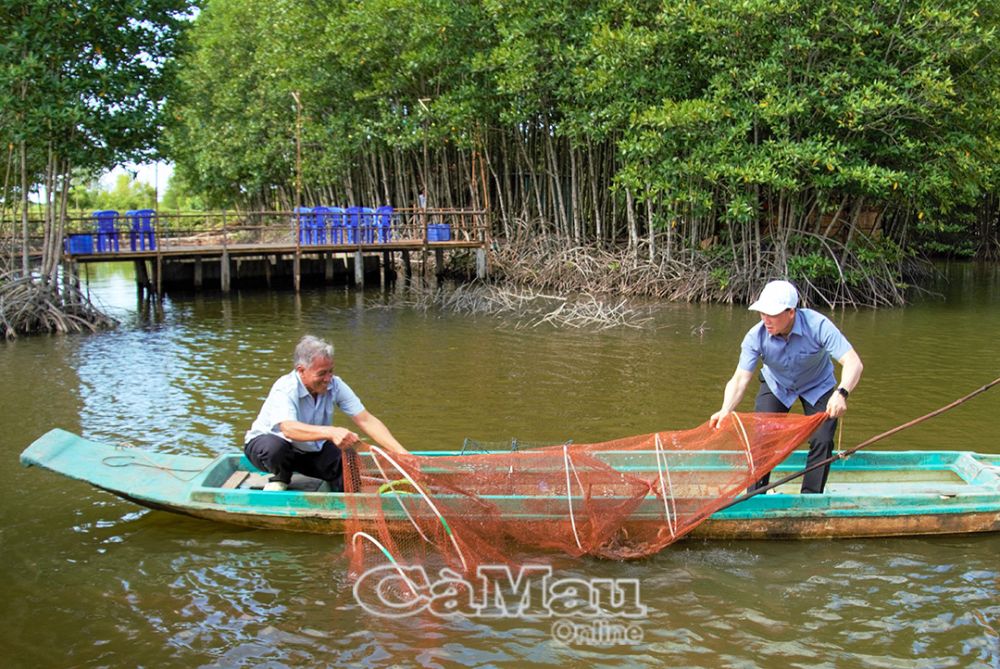 Tại đây, đoàn được giới thiệu tổng quan về mô hình nuôi tôm sinh thái gắn với phát triển du lịch trải nghiệm; trực tiếp tham gia các hoạt động thu hoạch tôm, cua. Mô hình này đang được người dân địa phương áp dụng nhằm tạo nguồn tôm hữu cơ phục vụ xuất khẩu, góp phần nâng cao giá trị kinh tế và khẳng định thương hiệu tôm sạch của địa phương nói riêng, tỉnh Cà Mau nói chung trên thị trường trong và ngoài nước.