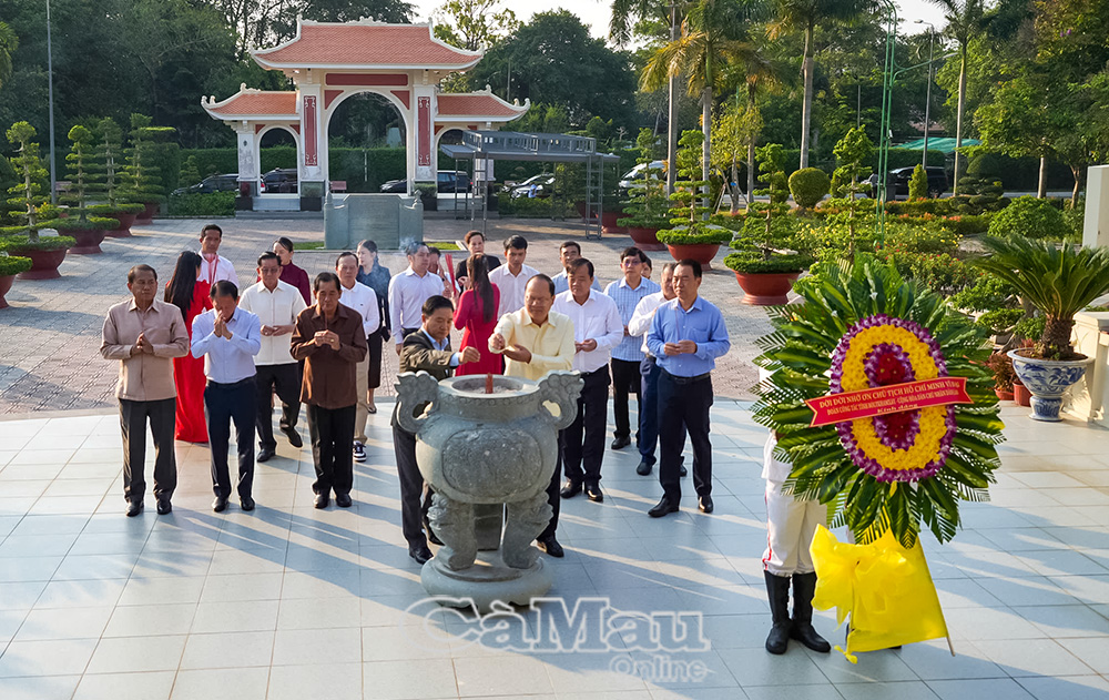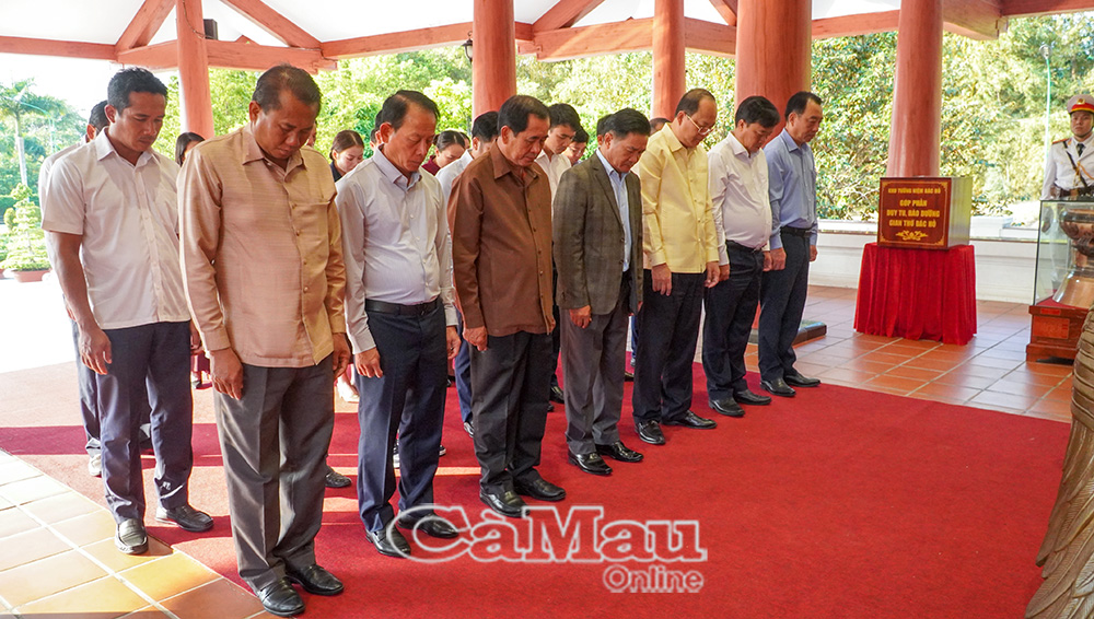 Lãnh đạo tỉnh Cà Mau cùng dâng hoa, dâng hương với đoàn công tác tỉnh Bo-ly-kham-xay có các đồng chí: Nguyễn Hồ Hải, Uỷ viên Ban Chấp hành Trung ương Đảng, Bí thư Tỉnh uỷ; Huỳnh Quốc Việt, Phó Bí thư Thường trực Tỉnh uỷ; Lữ Quang Ngời, Phó Bí thư Tỉnh uỷ, Chủ tịch UBND tỉnh.