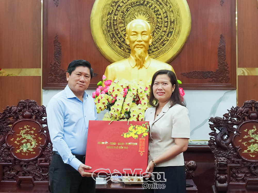 Phó Chủ tịch UBND tỉnh Cà Mau Lê Văn Sử, cùng đoàn công tác tặng quà, chúc Tết đến đồng chí Nguyễn Thị Ngọc Điệp, Phó Chủ tịch UBND TP Cần Thơ.