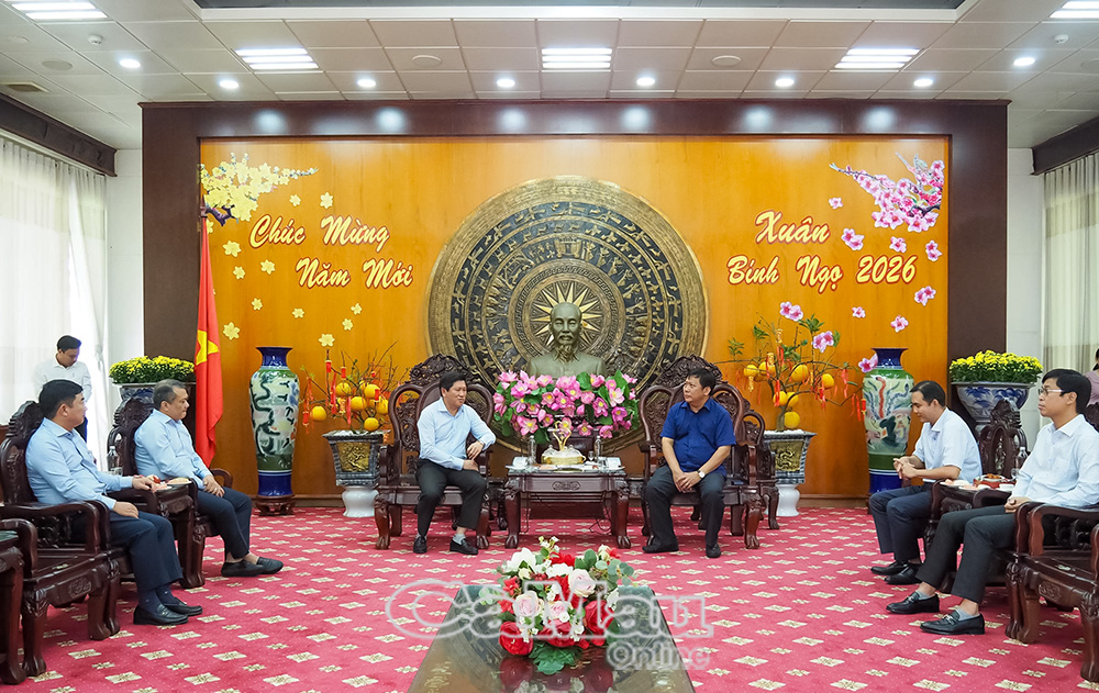 Báo Cà Mau Nhân dịp Tết Nguyên đán Bính Ngọ 2026, sáng 14/2, đoàn công tác của Tỉnh uỷ, HĐND, UBND, Uỷ ban MTTQ Việt Nam tỉnh Cà Mau do đồng chí Lê Văn Sử, Tỉnh uỷ viên, Phó Chủ tịch UBND tỉnh, làm trưởng đoàn đến thăm, chúc Tết Thành uỷ Cần Thơ và Tỉnh uỷ Tây Ninh.