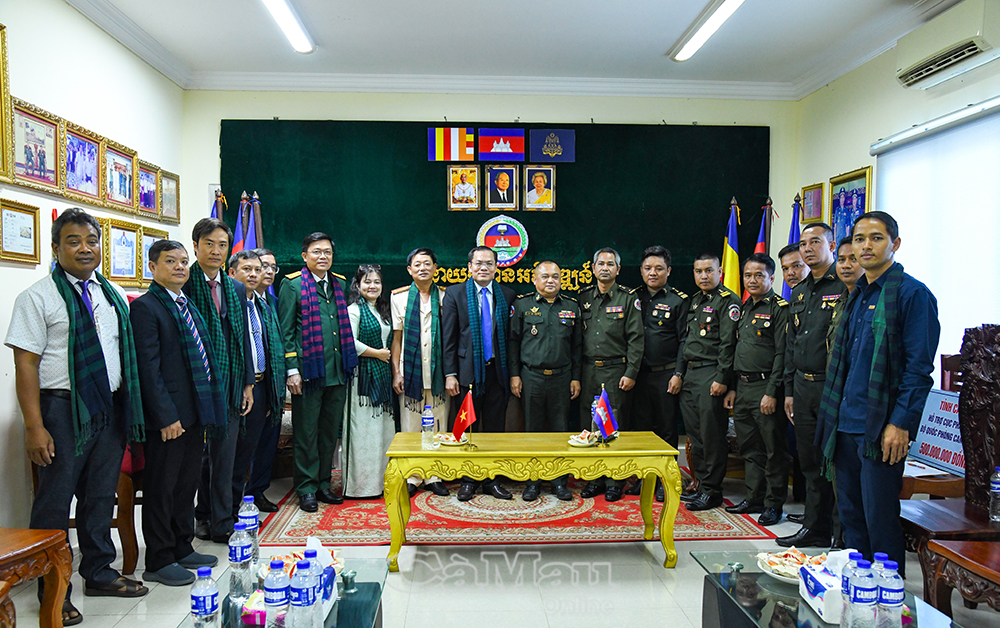Đoàn cán bộ tỉnh Cà Mau chụp ảnh lưu niệm cùng Cục trưởng Ouk Hoeunpisey và lực lượng đơn vị.