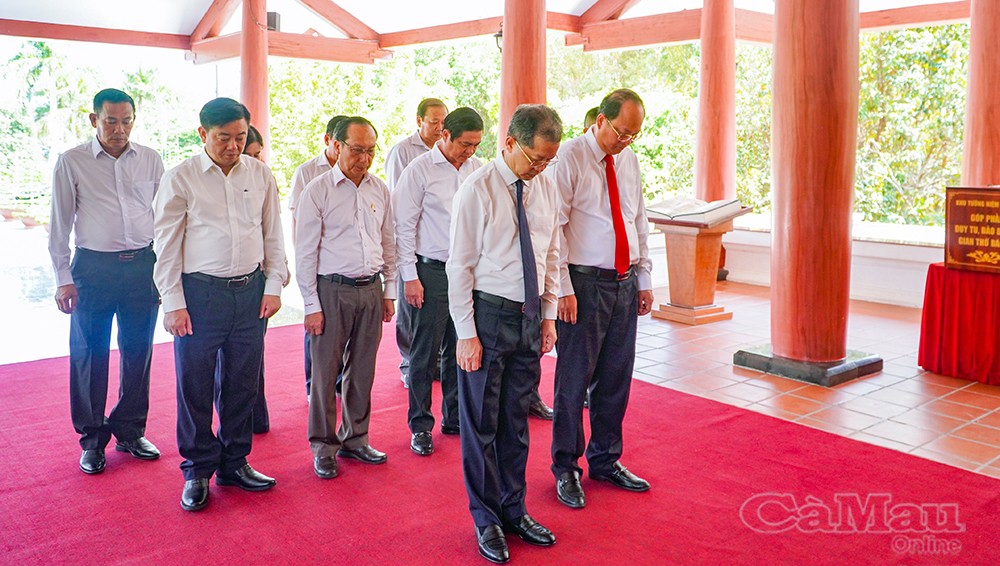 Trước đó, đoàn công tác đã đến viếng, dâng hương Chủ tịch Hồ Chí Minh tại Khu tưởng niệm Người ở phường An Xuyên. Tại đây, các đại biểu đã dâng hoa, dâng hương và dành phút mặc niệm, tưởng nhớ công lao to lớn của Chủ tịch Hồ Chí Minh đối với sự nghiệp giải phóng dân tộc.