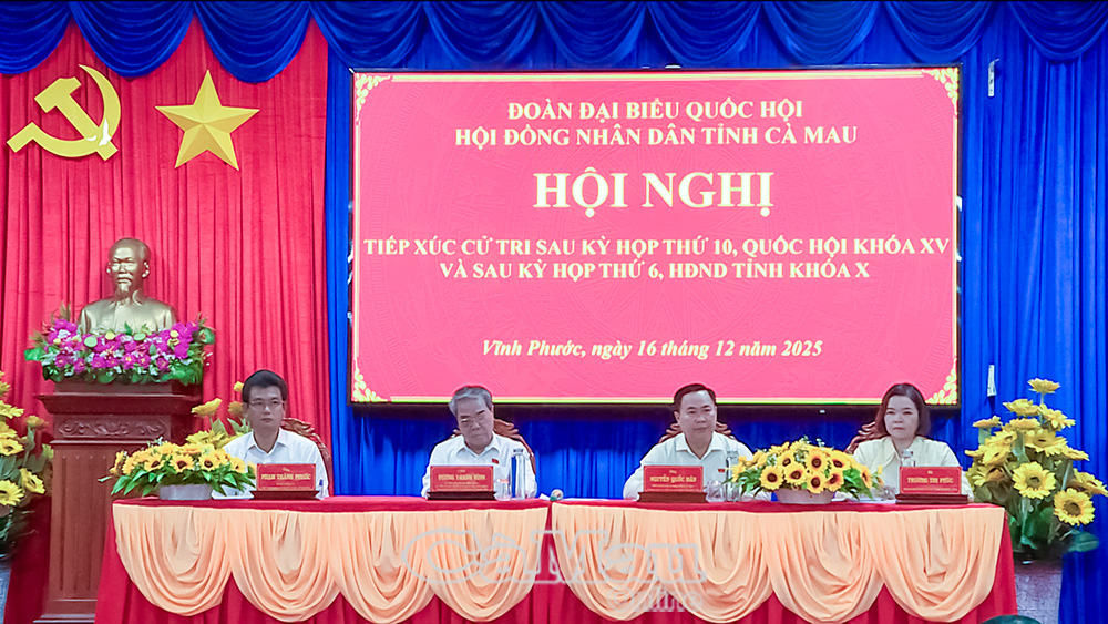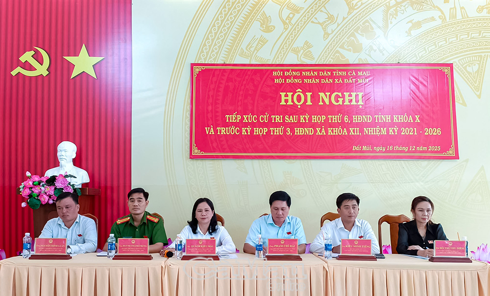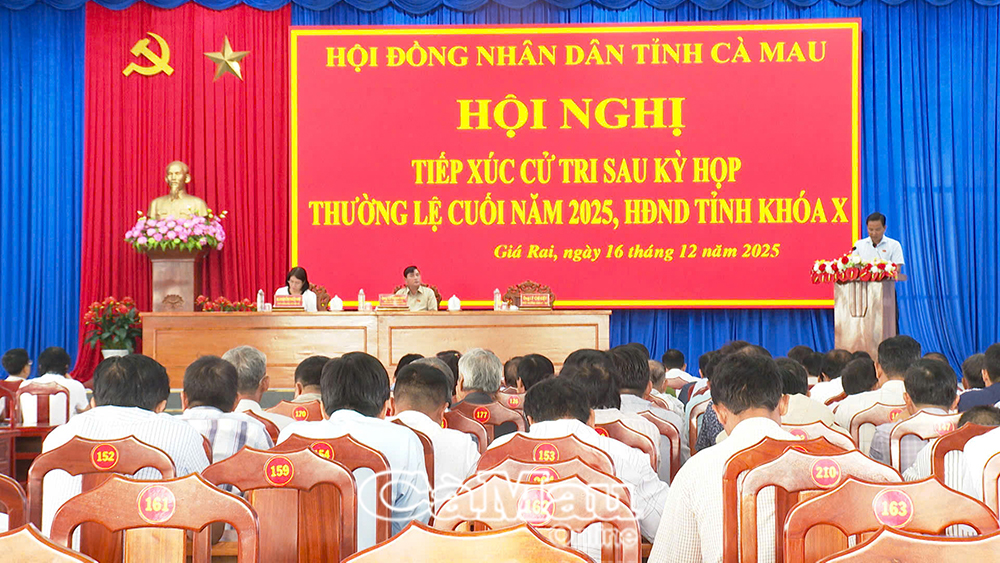 Báo Cà Mau Ngày 16/12, Đoàn ĐBQH và các Tổ đại biểu HĐND tỉnh Cà Mau đồng loạt tổ chức tiếp xúc cử tri tại nhiều địa phương sau Kỳ họp thứ 10, Quốc hội khoá XV và Kỳ họp thường lệ cuối năm 2025 HĐND tỉnh khoá X, nhằm thông tin kết quả kỳ họp và lắng nghe, giải quyết các ý kiến, kiến nghị của cử tri.