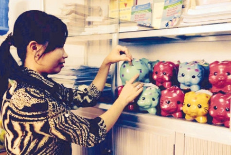 | Phụ nữ Phường 7 tiết kiệm tiền chi tiêu, bỏ vào ống heo để giúp hội viên nghèo. |