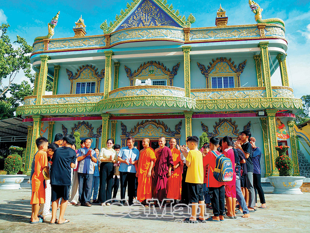 Con em vùng đồng bào ấp Ðường Ðào, ấp Cây Khô, Xã Hồ Thị Kỷ đến chùa Rạch Giồng học chữ Khmer vào mỗi dịp hè.