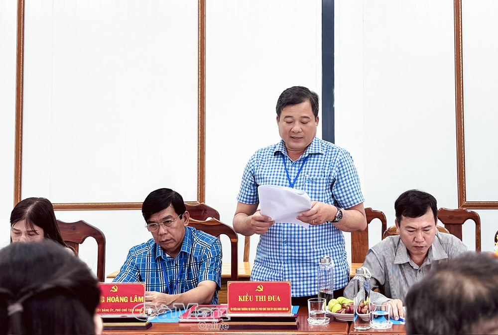 Đồng chí Kiều Thi Đua, Phó Chủ tịch UBND xã Lương Thế Trân, báo cáo kết quả công tác CCHC 9 tháng đầu năm 2025.