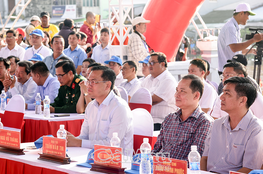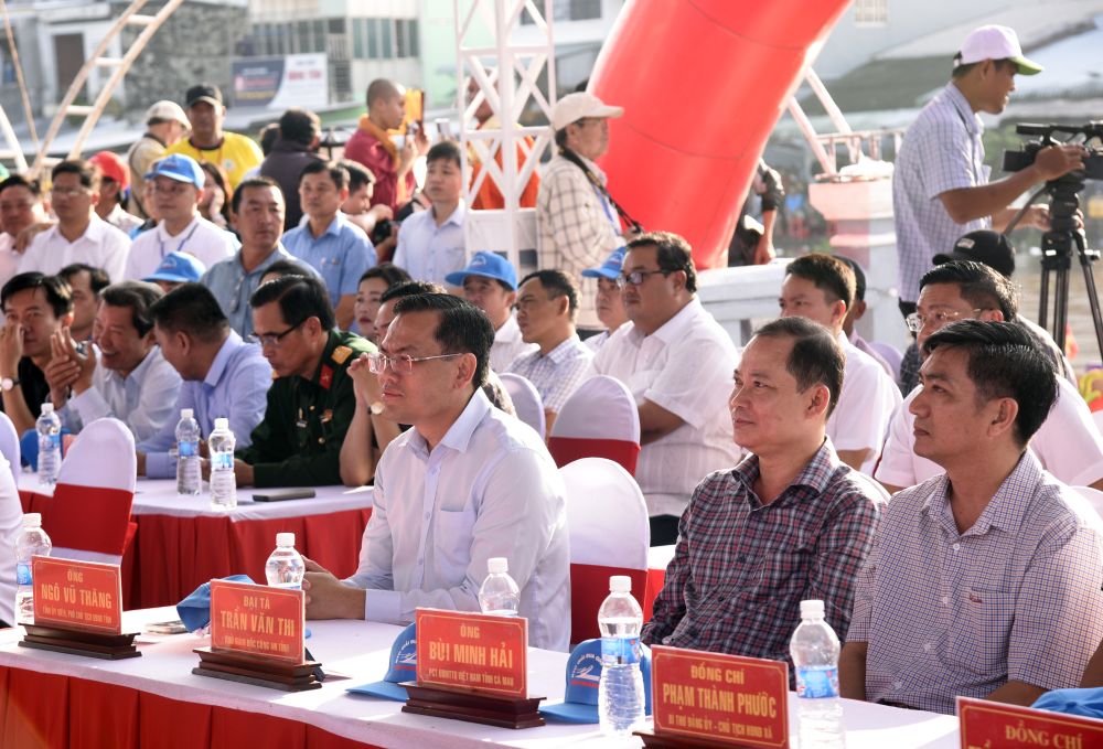 Phó Chủ tịch UBND tỉnh Ngô Vũ Thăng và các đại biểu dự lễ khai mạc Giải đua ghe Ngo - xã Phước Long năm 2025.