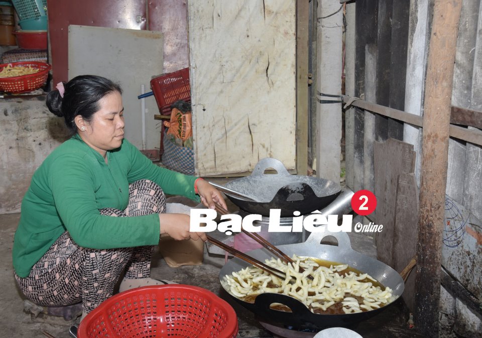 Trong thời khắc hân hoan bước sang năm mới, nhiều ngôi chùa Khmer trong tỉnh đã được khoác lên mình những gam màu rực rỡ; cờ hoa, băng-rôn mừng tết Chôl-chnăm-thmây được treo khắp nơi làm lòng người xốn xang (ảnh 1). Dưới những chái bếp, các mẹ, các chị trổ tài làm bánh, các món ăn từ sản vật địa phương để cúng tổ tiên, dâng lễ vật vào chùa (ảnh 2 và 3).