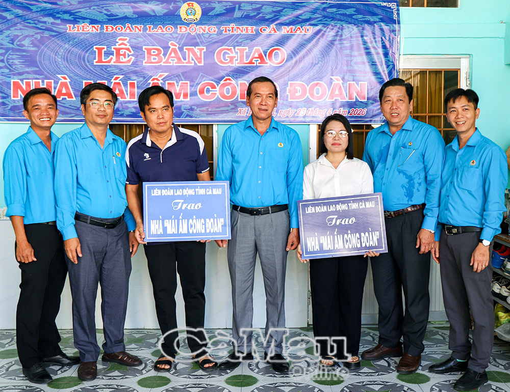 LĐLĐ tỉnh Cà Mau vừa phối hợp với Công đoàn xã Năm Căn, bàn giao 2 nhà “Mái ấm Công đoàn” cho đoàn viên có hoàn cảnh khó khăn thuộc Công đoàn cơ sở Trường THPT Viên An (xã Đất Mũi). Đây là chương trình thuộc chuỗi hoạt động của Tháng hành động về ATVSLĐ gắn với Tháng Công nhân năm 2026.