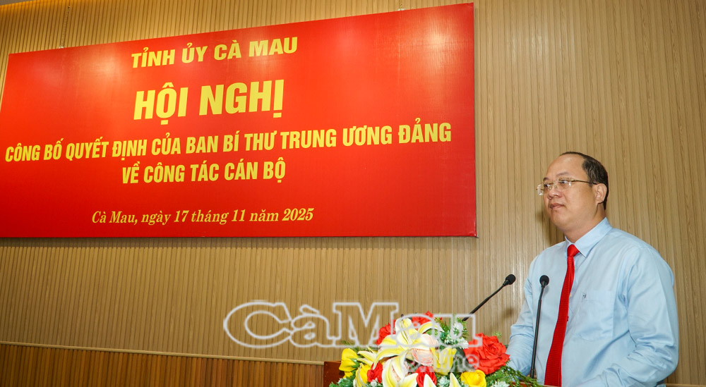 Sáng 17/11, Tỉnh uỷ Cà Mau tổ chức Hội nghị công bố Quyết định của Ban Bí thư Trung ương Đảng về công tác cán bộ.